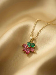 Pink Petal & Emerald Flower Necklace