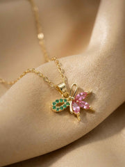 Pink & Green Butterfly Necklace