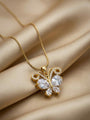 • Design: Butterfly pendant, pear-cut crystal wings, pavé outline, snake chain