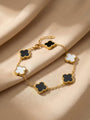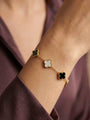 Elevate your jewelry collection with the Luxe Dual Clover Bracelet. Its alternating ivory and onyx-tone clover motifs create a balanced, sophisticated look, enhanced by exquisite gold beading around each charm.