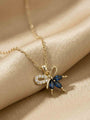 Deep elegance. This dainty pendant features a butterfly or flower motif crafted from dark midnight-blue marquise crystals, resembling sapphires. A small loop of clear pave crystals adds a touch of brightness and movement to the sophisticated dark stones.