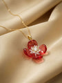 • Design: Translucent ruby red flower pendant, white frosted starburst center, delicate chain