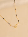 Embrace the essence of grace and good fortune with the Saubhagya Mangalsutra—a stunning symbol of eternal love and prosperity. Designed with a radiant pendant accented by sparkling stones, it beautifully rests on the traditional black and gold bead chain, creating the perfect harmony of culture and contemporary elegance.
