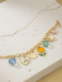 Design: Multicolor enamel charms, gemstone-style drops, and a textured gold coin
